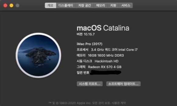 - 반드시 SMBIOS값을 새로 생성해 넣어주셔야 작동합니다. (iMacPro1,1로 생성하시면 됩니다.)