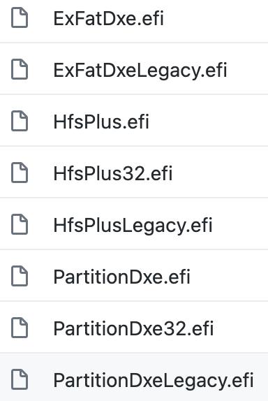 - /Volumes/EFI/EFI/OC/Drivers/(사용중인 Driver 파일 전체)