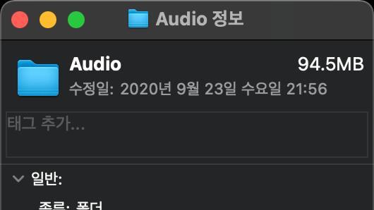이렇게 정리하고 난 뒤 Audio 폴더의 용량을 다시 볼까요?