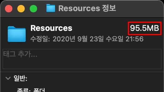 그런데 이 Resource 폴더는 거의 100mb 가량 됩니다.