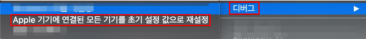 'Apple 기기에 연결된 모든 기기를 초기 설정 값으로 재설정' 항목을 클릭하면 Mac에 연결된 Apple 악세사리가 모두 공장초기화됩니다.