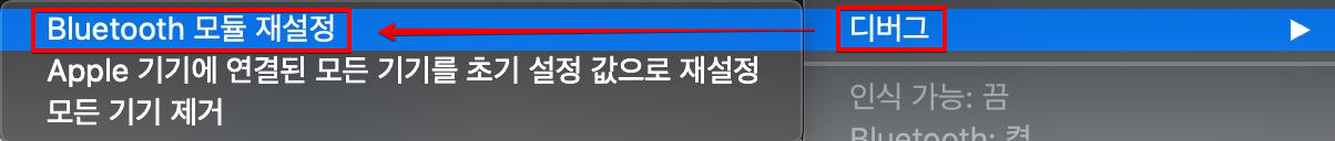 '디버그 - Bluetooth 모듈 재설정'을 클릭하면 즉시 블루투스 칩셋이 초기화되며 연결된 모든 장치의 연결이 해제됩니다.