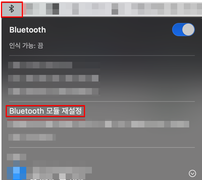 'Bluetooth 모듈 재설정'을 클릭하면 즉시 블루투스 칩셋이 초기화되며 연결된 모든 장치의 연결이 해제됩니다.