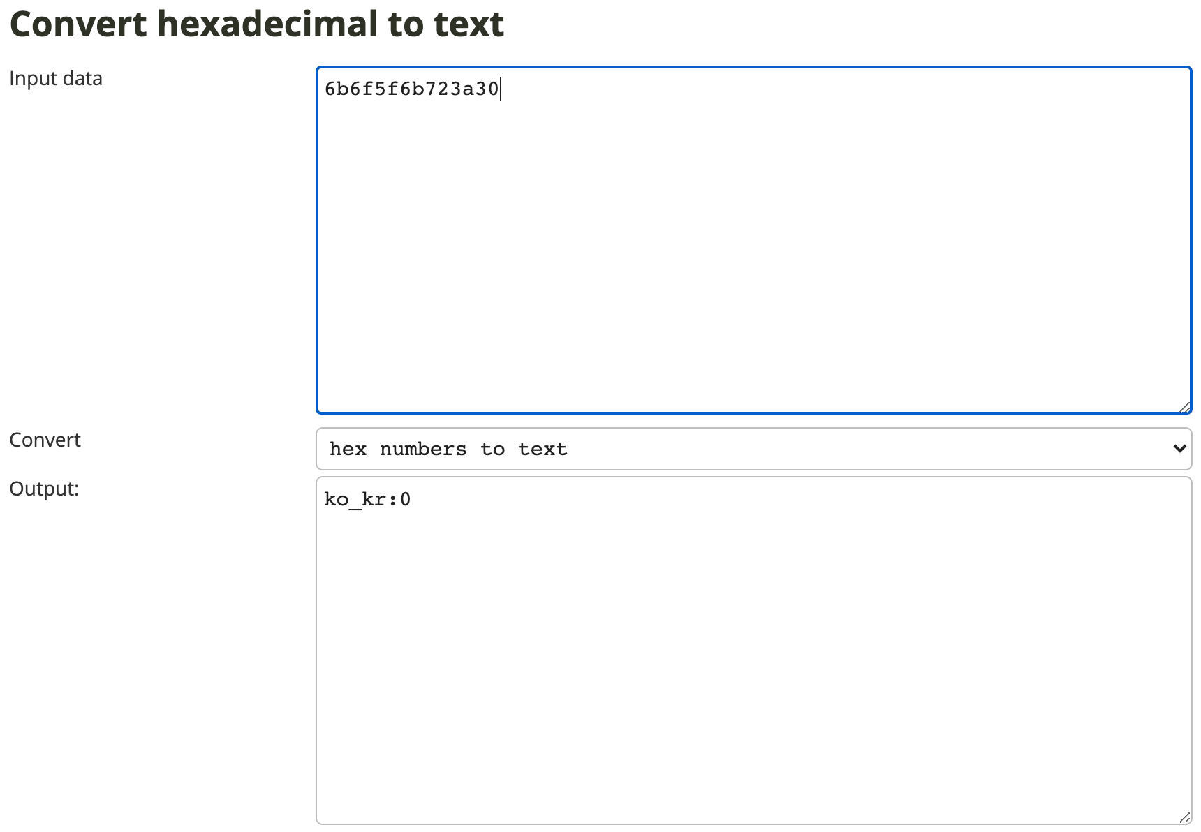 참고로 한국어 Data 값은 6b6f5f6b723a30 입니다.