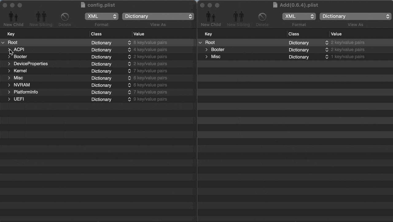 - OpenCorePkg를 다운로드 받으면 포함되어 있는 Docs의 Sample.plist와 Differences.pdf를 기반으로 설명합니다.