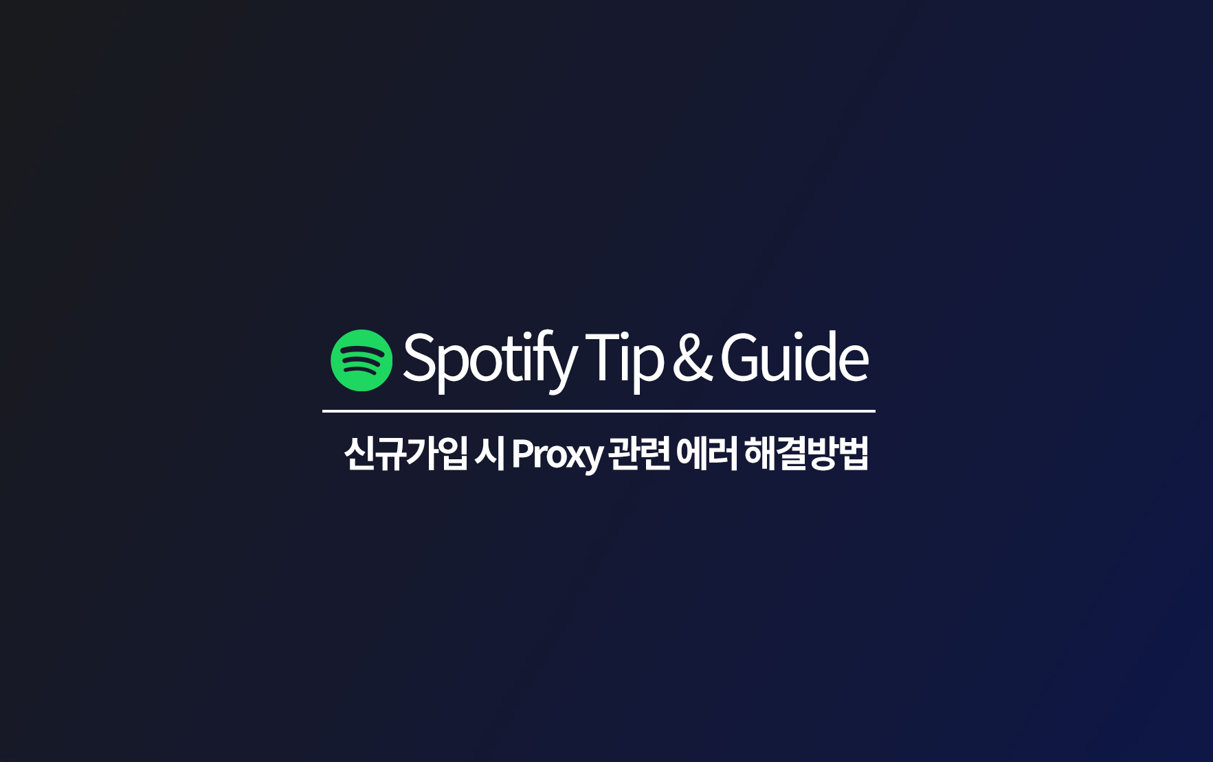 2020년 12월 중순 즈음하여 스포티파이 신규가입 시 프록시를 사용중인 것 같다며 에러메시지를 표출하는 경우가 잦아졌는데,