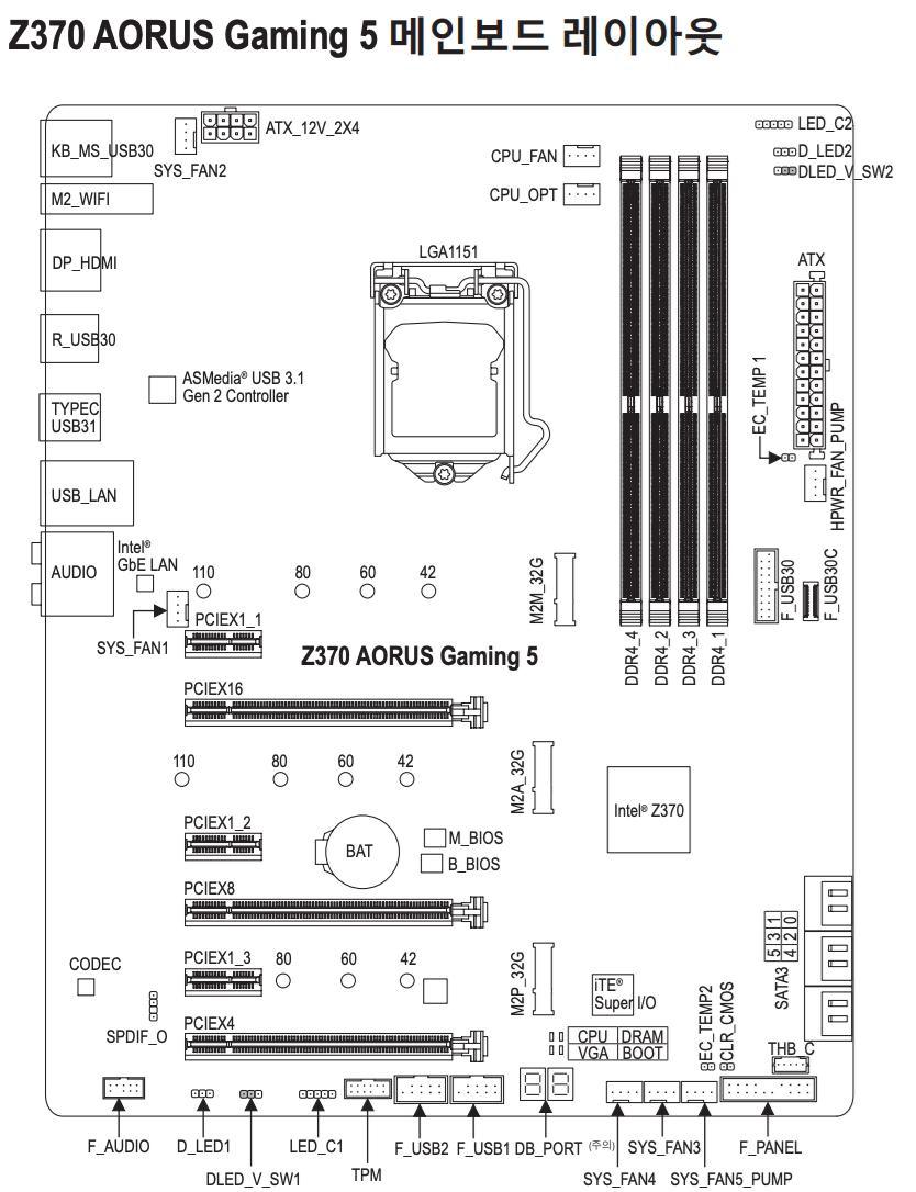 - 사진 상 PCIEX16 슬롯에 GPU, PCIEX4 슬롯에 Alpine Ridge를 설치한 상태입니다.