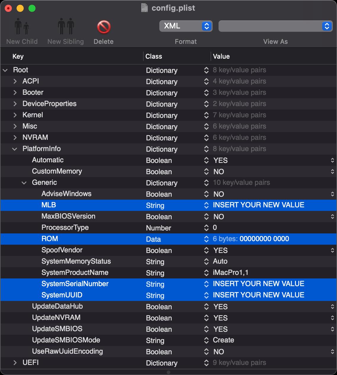 - Windows 환경의 사용자는 ProperTree를 통해 아래 과정을 모두 진행하시고 사용하시기 바랍니다.