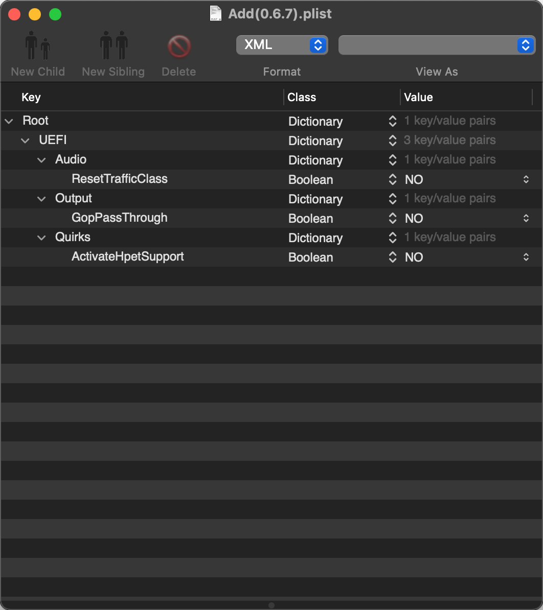 - Add.plist에는 추가해야할 항목이 적혀있습니다. 또한 해당 항목의 값은 오픈코어 추천값(FailSafe)으로 적혀있습니다.
