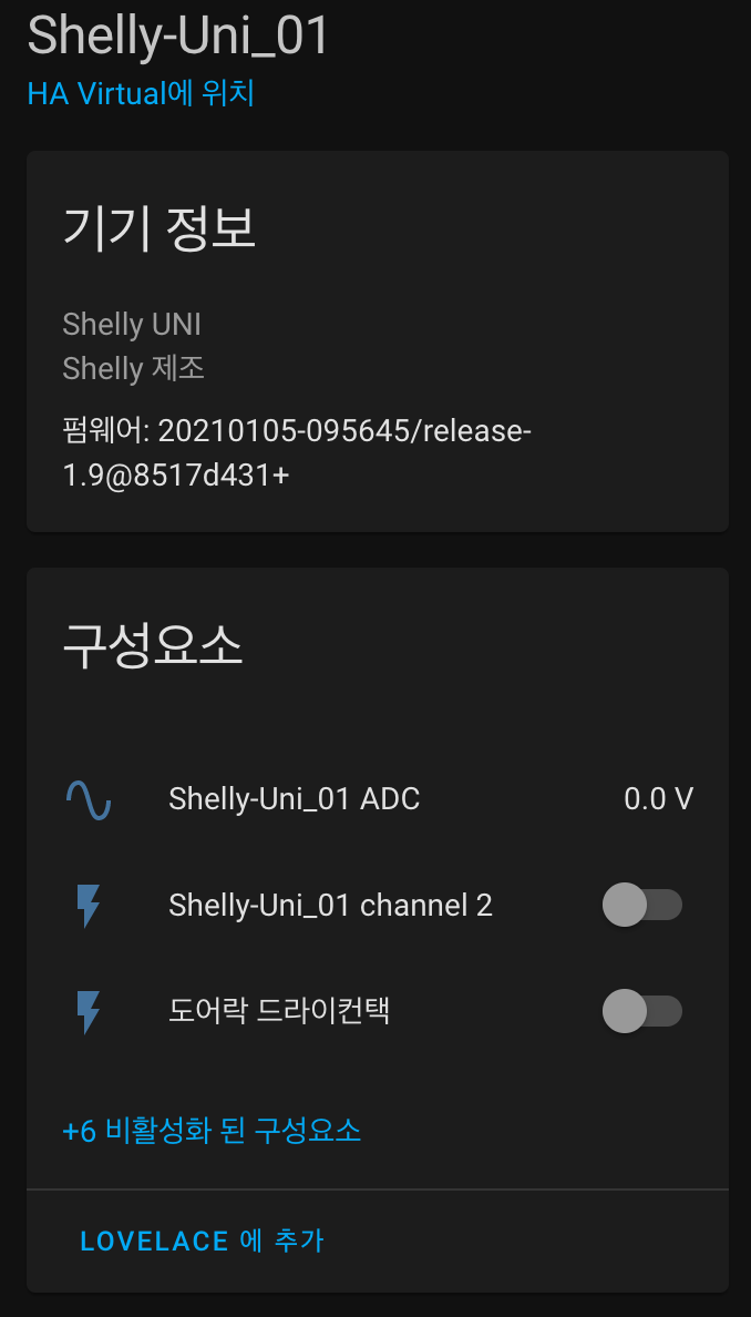 | Shlly Uni 구성하기(로컬 설정과 HA 연동)