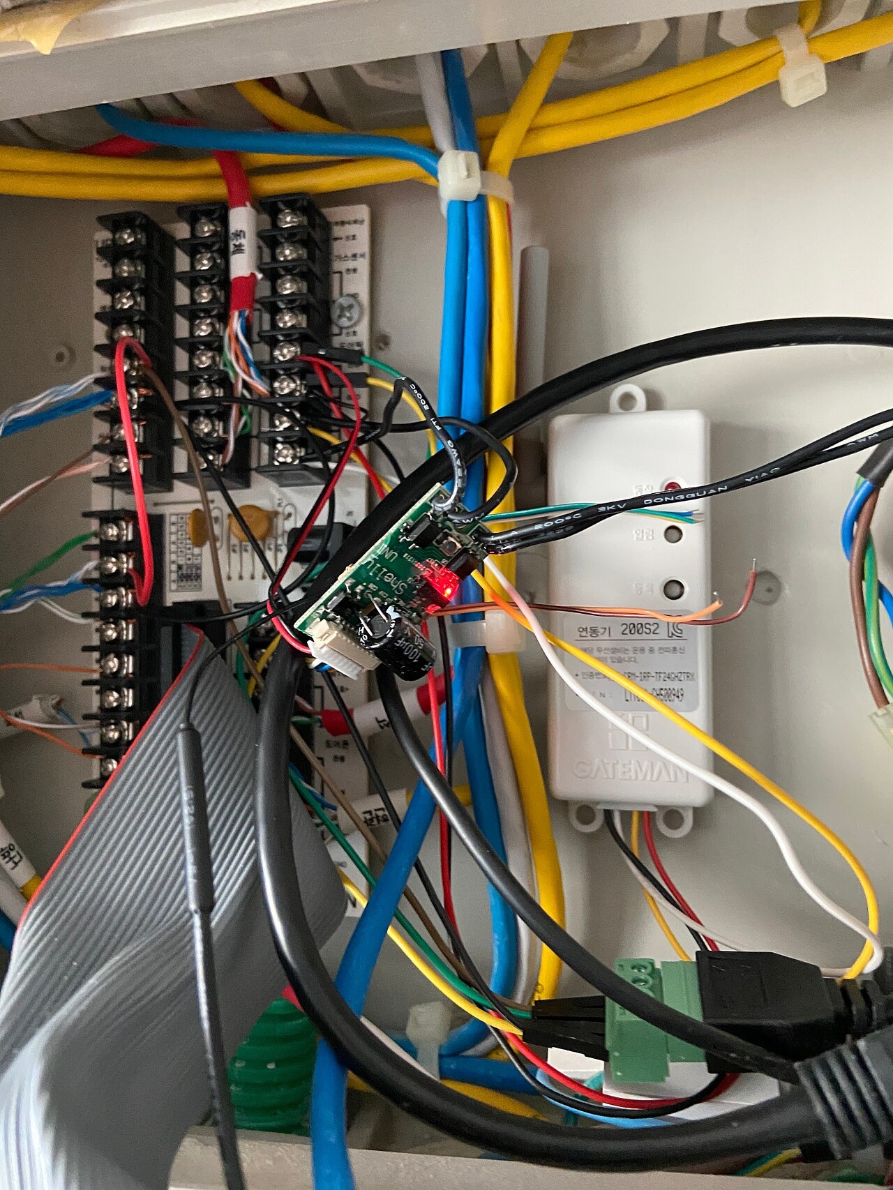 원래는 월패드에서 "문열림"을 누르면, 월패드가 결선된 보드에 연결된 연동기에게 전기 신호를 줍니다.