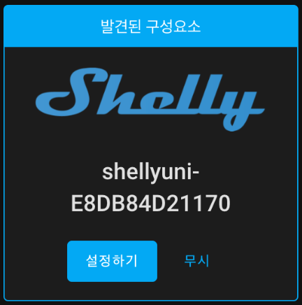 설정하기 버튼을 누르면 자동으로 구성이 완료됩니다. (Shelly 제품군은 HA를 네이티브로 지원합니다.)