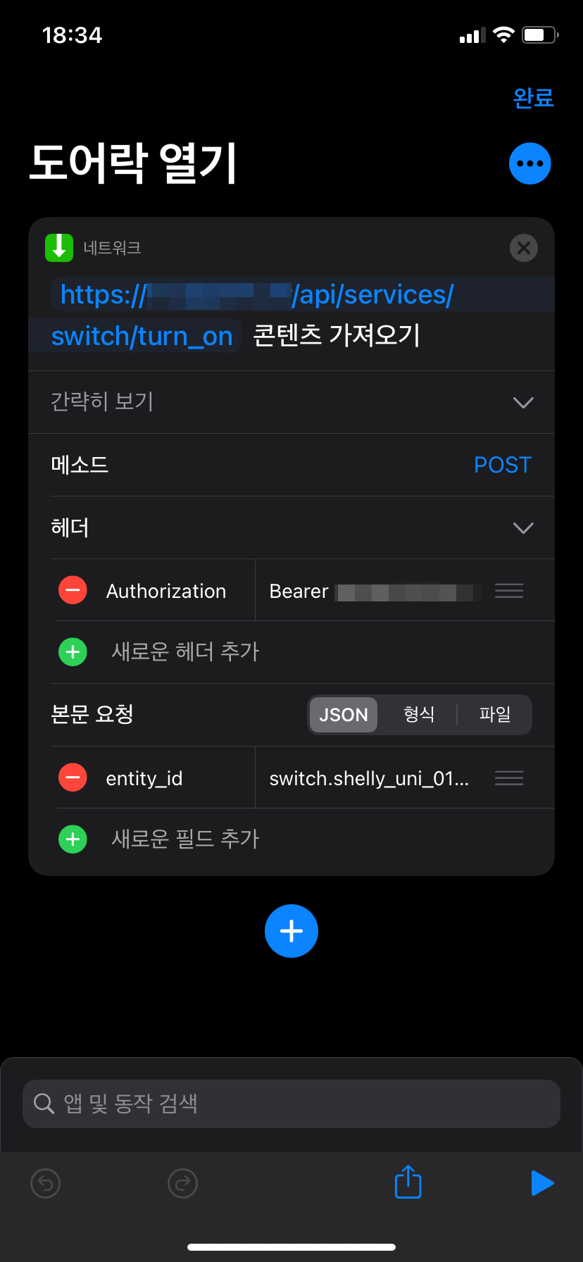 Homekit에 연동하여 단축어로 장치를 제어하는 방법도 있겠으나.. 외출 했다 돌아오는 상황이 대부분인데,