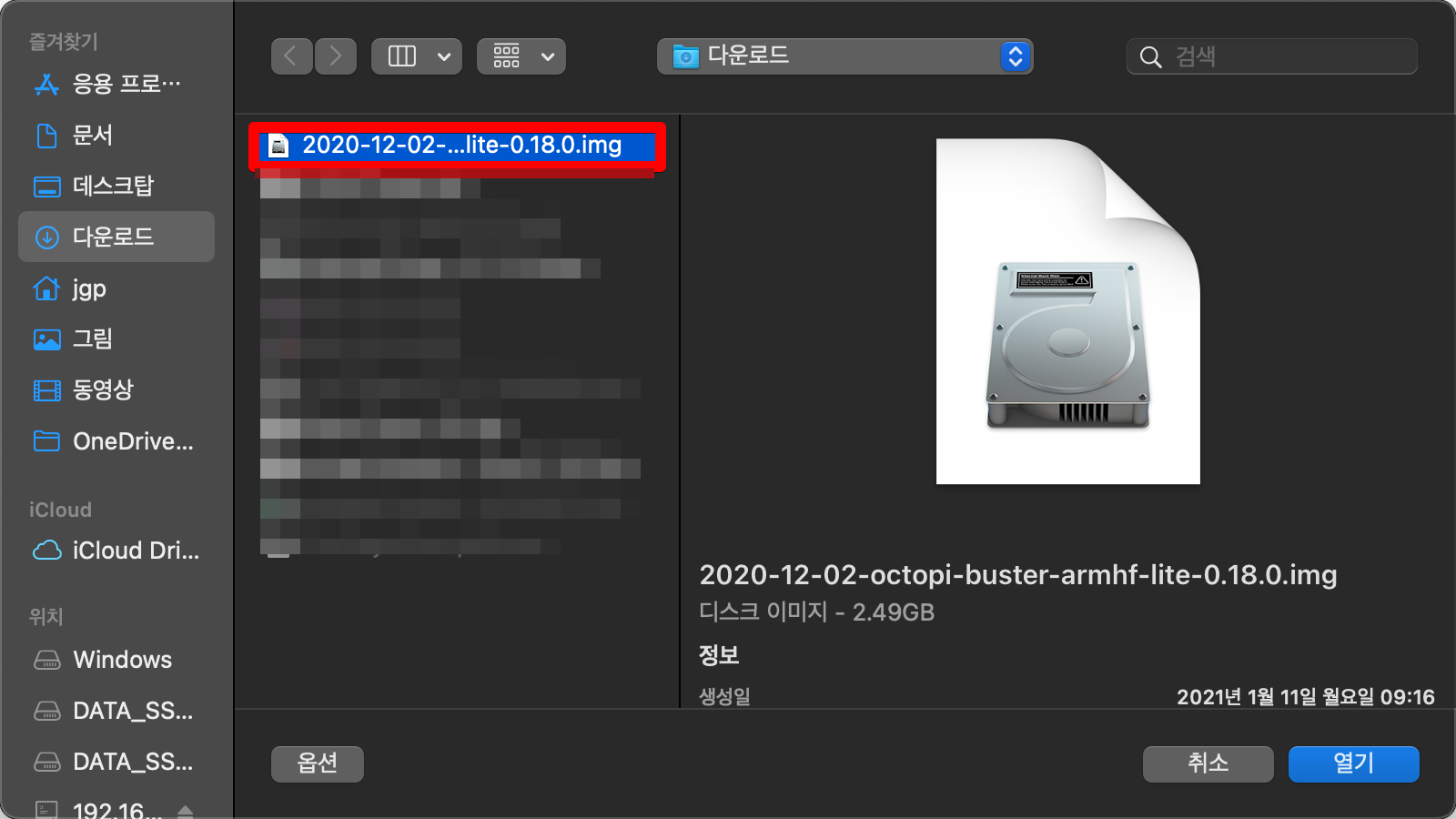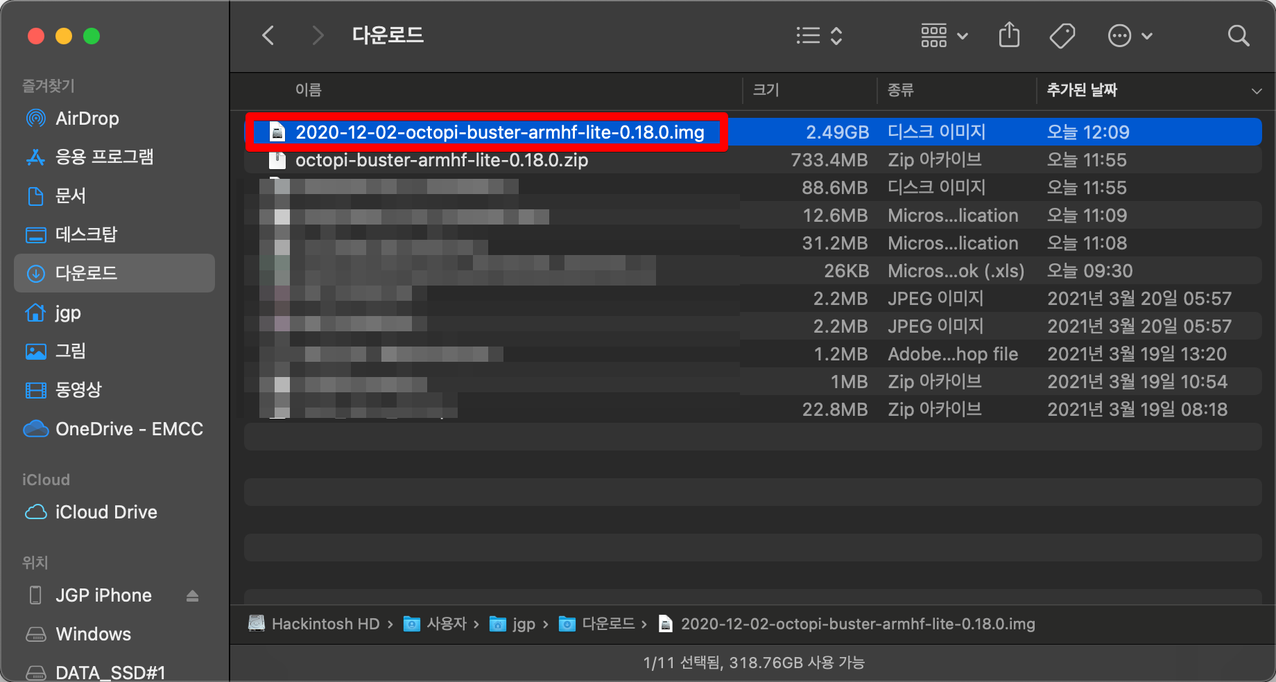 - OctoPi 이미지를 다운로드 받습니다. (3B/3B+/4B 공용입니다.)