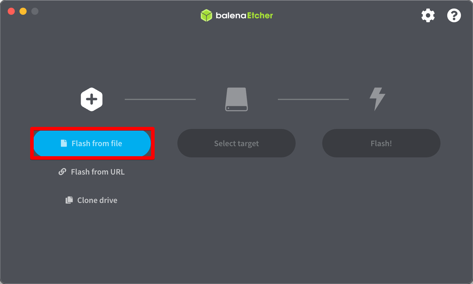 - 'Select target' 을 눌러 라즈베리파이에 삽입할 SD카드를 선택합니다.