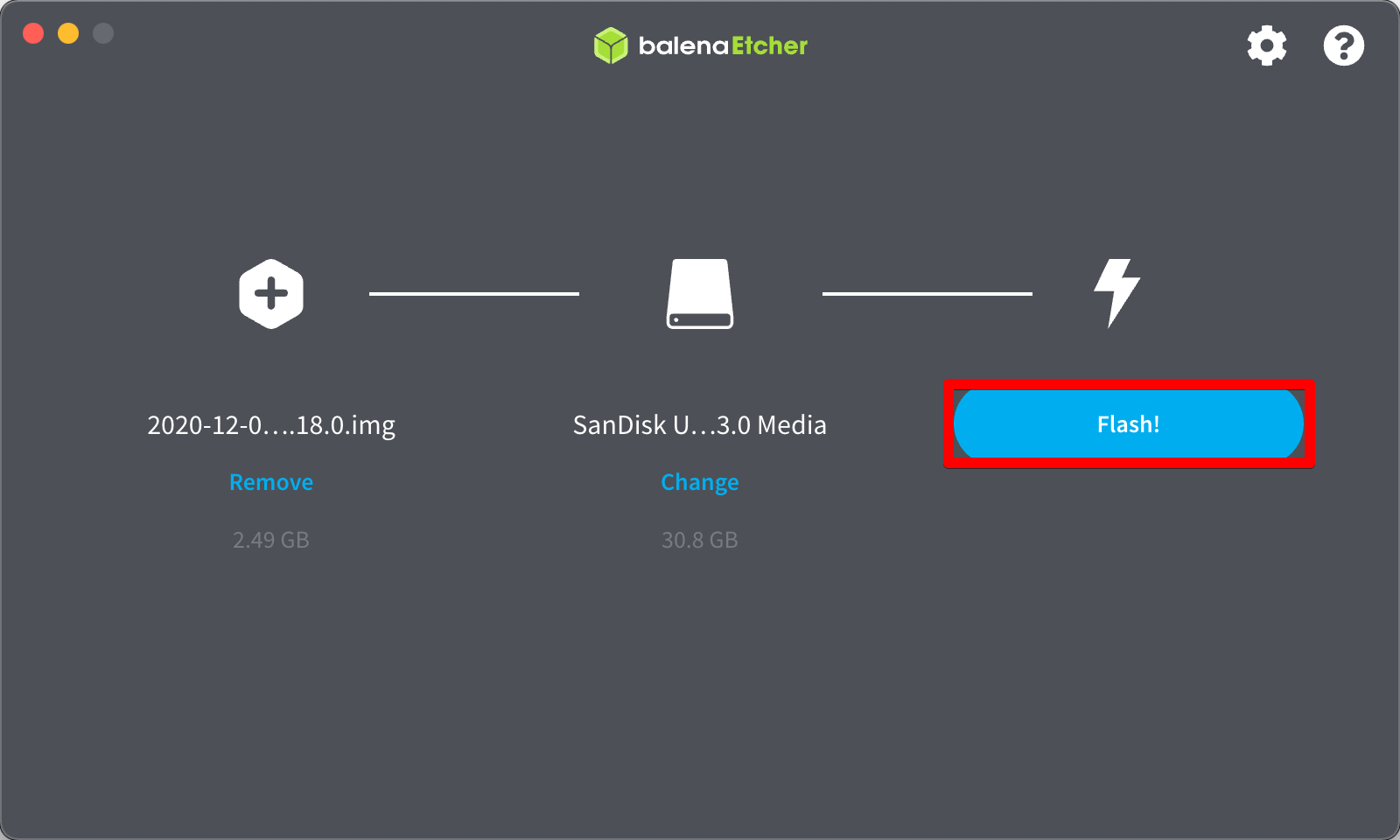 - SD카드 리더기에 SD카드를 꽃고(16GB 이상), Balena Etcher를 실행합니다.