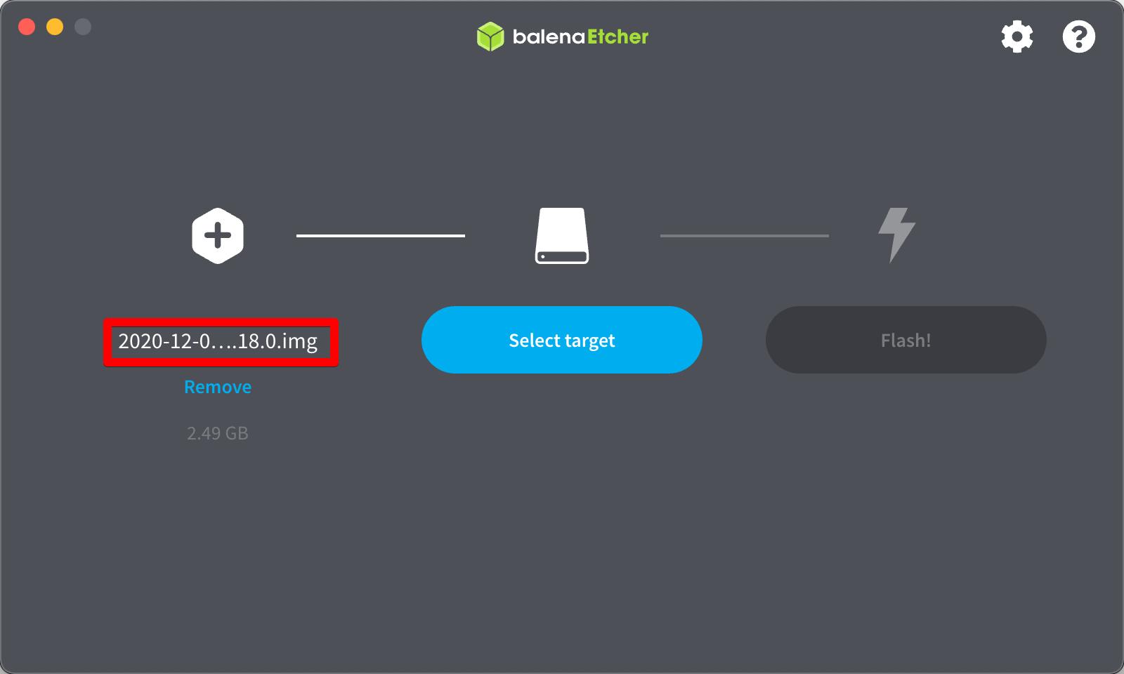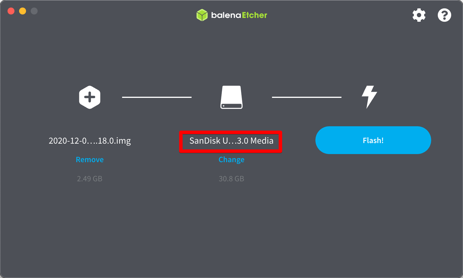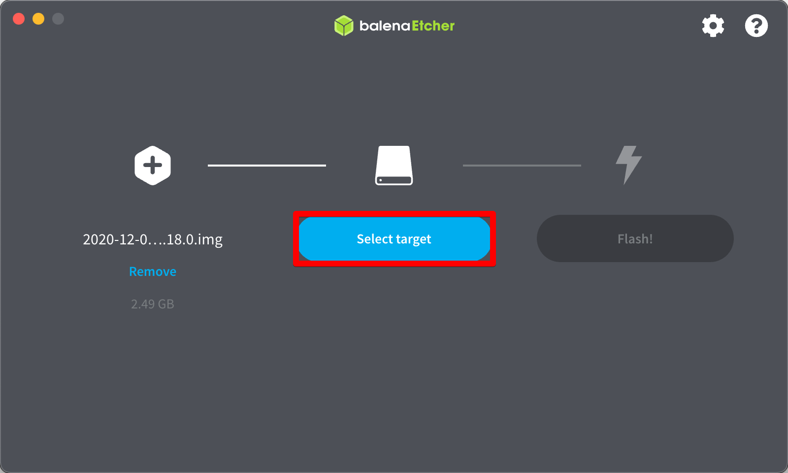 - 'Select target' 을 눌러 라즈베리파이에 삽입할 SD카드를 선택합니다.
