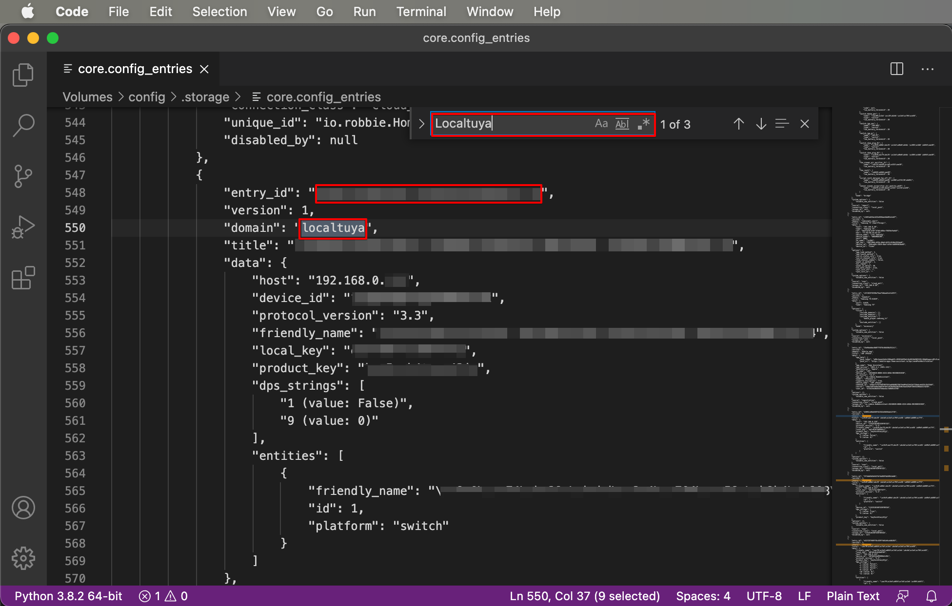 .storage 폴더 하위에 core.config_entries 파일을 엽니다.