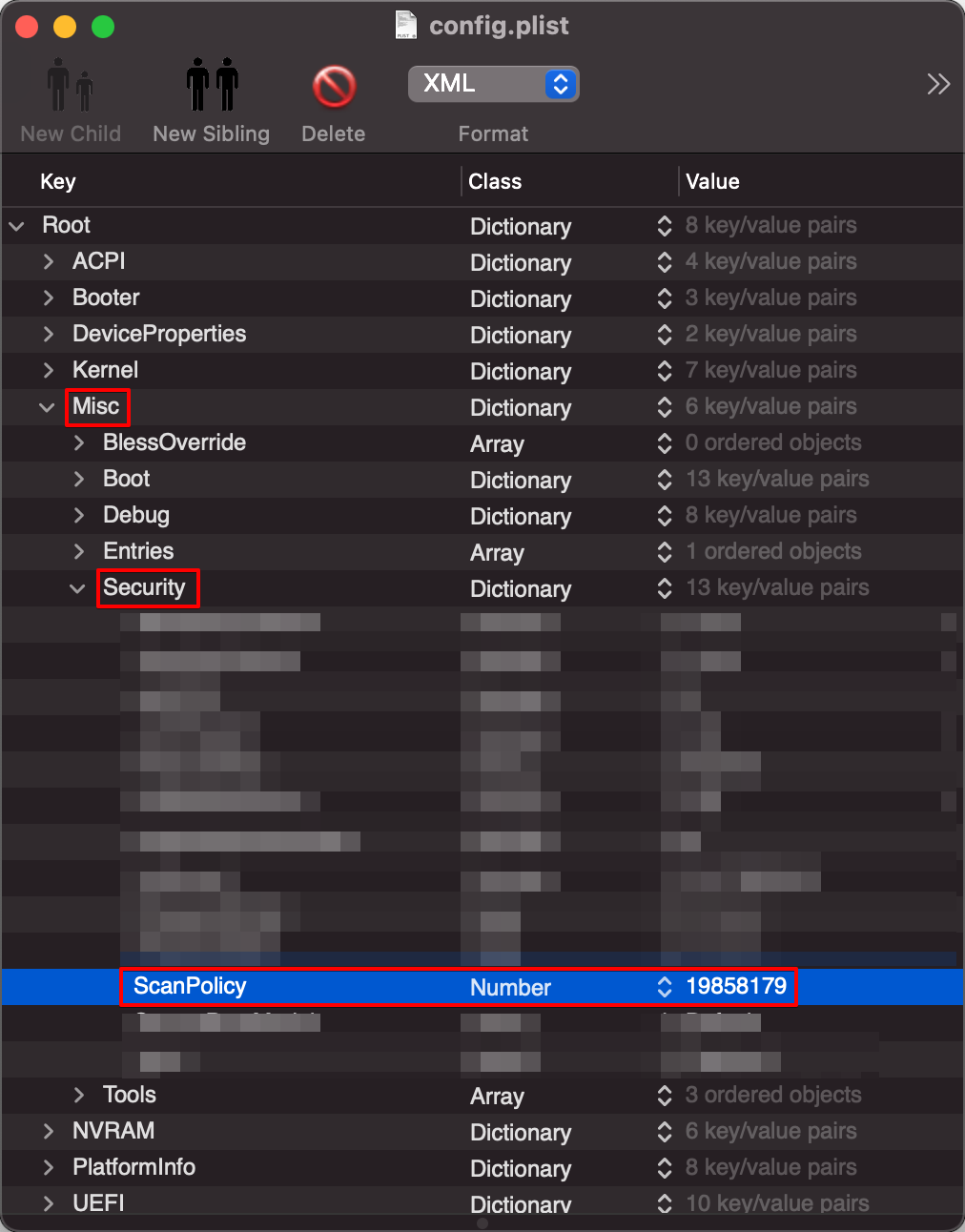 - OpenCore의 config.plist를 열고, Misc - Security - ScanPolicy에 변환한 값을 입력 후 저장, 재부팅하면 적용됩니다.