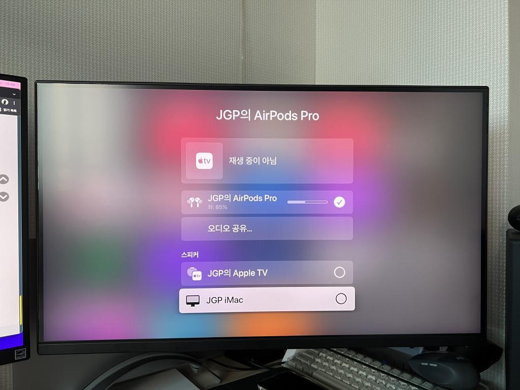 이 친구를 들이면서 의외로 만족스러운건 HomePod Mini 활용도인데요, 모니터에는 스피커가 없어서 모니터 HDMI 출력단자에 스피커를 꽃아야하나.. 고민중이었는데 그냥 HomePod Mini를 스피커로 쓰면 매우 간편해지더라고요.