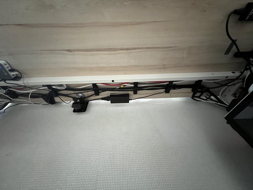 거기에 5포트 USB 허브는 3개나 쓰고 있고.. 3.5인치 스피커 1조, C타입 도킹스테이션, 5포트 랜 허브, 에어팟 맥스, 벨킨 맥세이프 차저, 3D 프린터 모니터링용 아두이노 모니터, USB 외장형 캡쳐보드, 모니터/게임기 소스 전환용 HDMI 셀렉터 2개... 이외에도 소소하게 수많은 유선 장치가 있는데 이러면 정말 책상 아래에서 케이블 댄스 파티가 열릴 수 밖에 없습니다.
