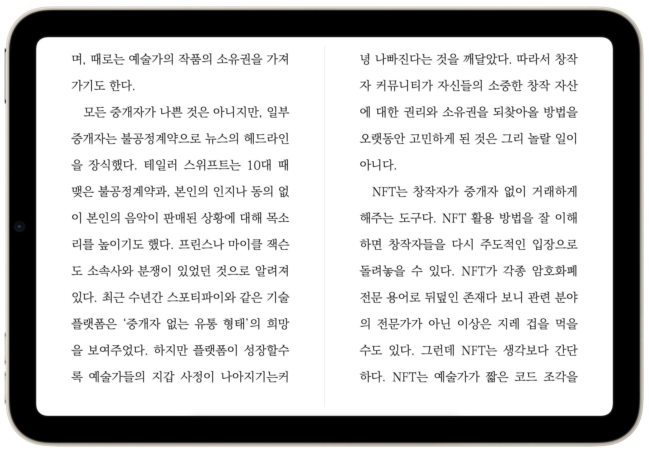 아이패드 프로 11인치는 책 좀 읽으면 손목이 시큰거리는데 이놈은 무게도 적당하고, 한손으로 들고 보기에도 부담이 없습니다.