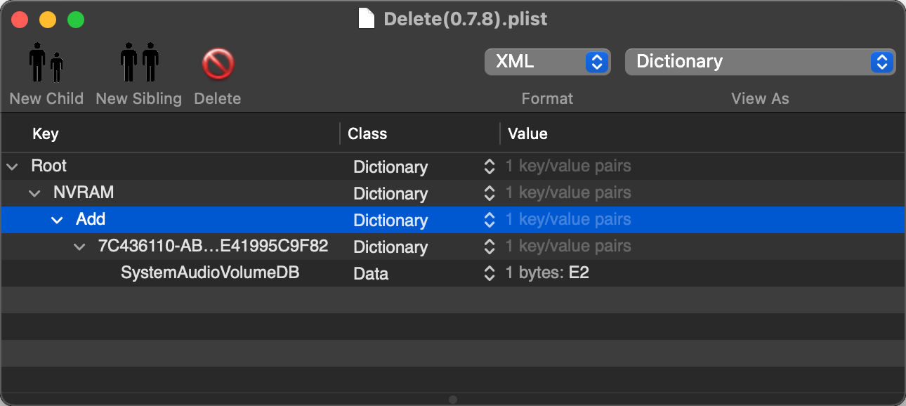 - NVRAM - Add - '7C436110-AB2A-4BBB-A880-FE41995C9F82' - SystemAudioVolumeDB 를 삭제해주세요.