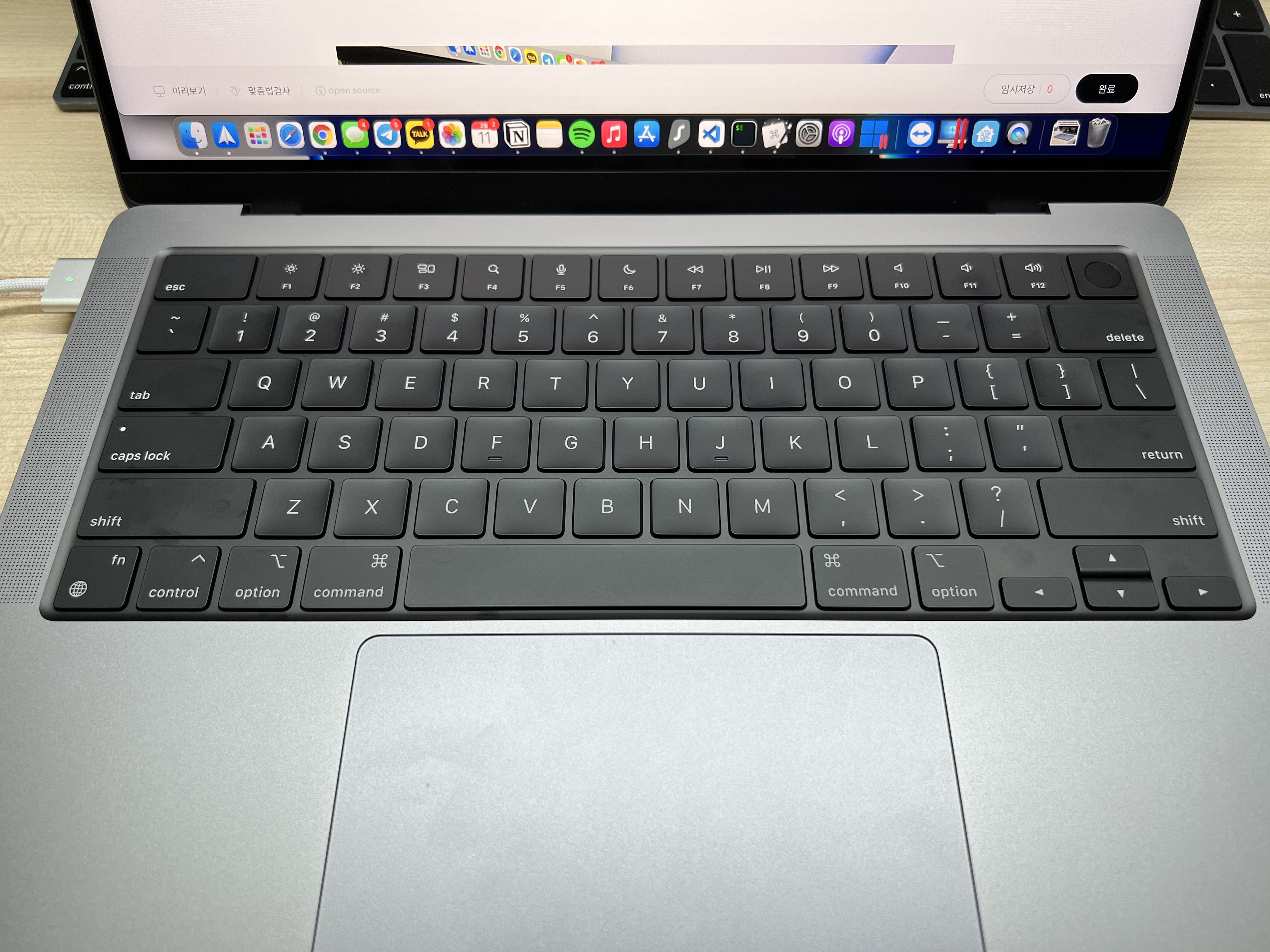 사진에 보이는 터치바는 신형 14인치에는 없습니다.