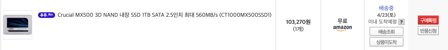 주문 후 다음날 받으려고 애를 썼으나 망할 롯데택배가 물량이 많은지 지연되는 바람에 3일만에 받았음.