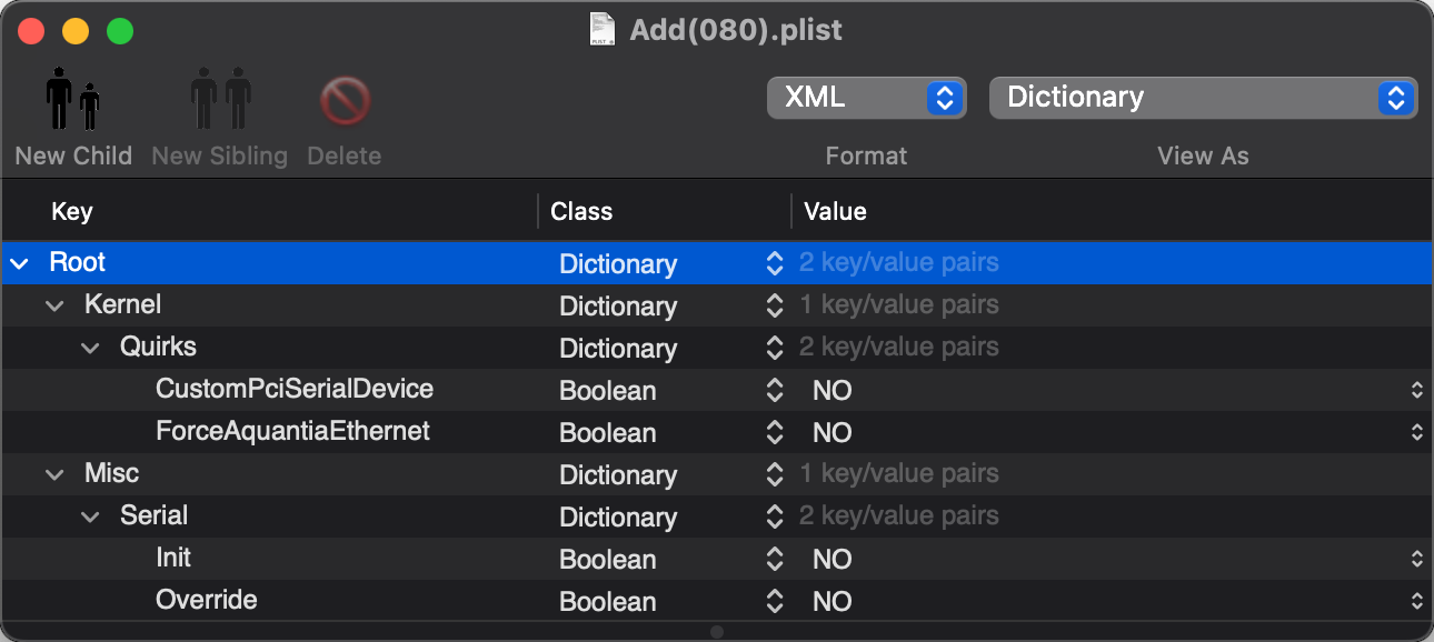 - Kernel - Quirks - CustomPciSerialDevice (Boolean, 기본값 NO)