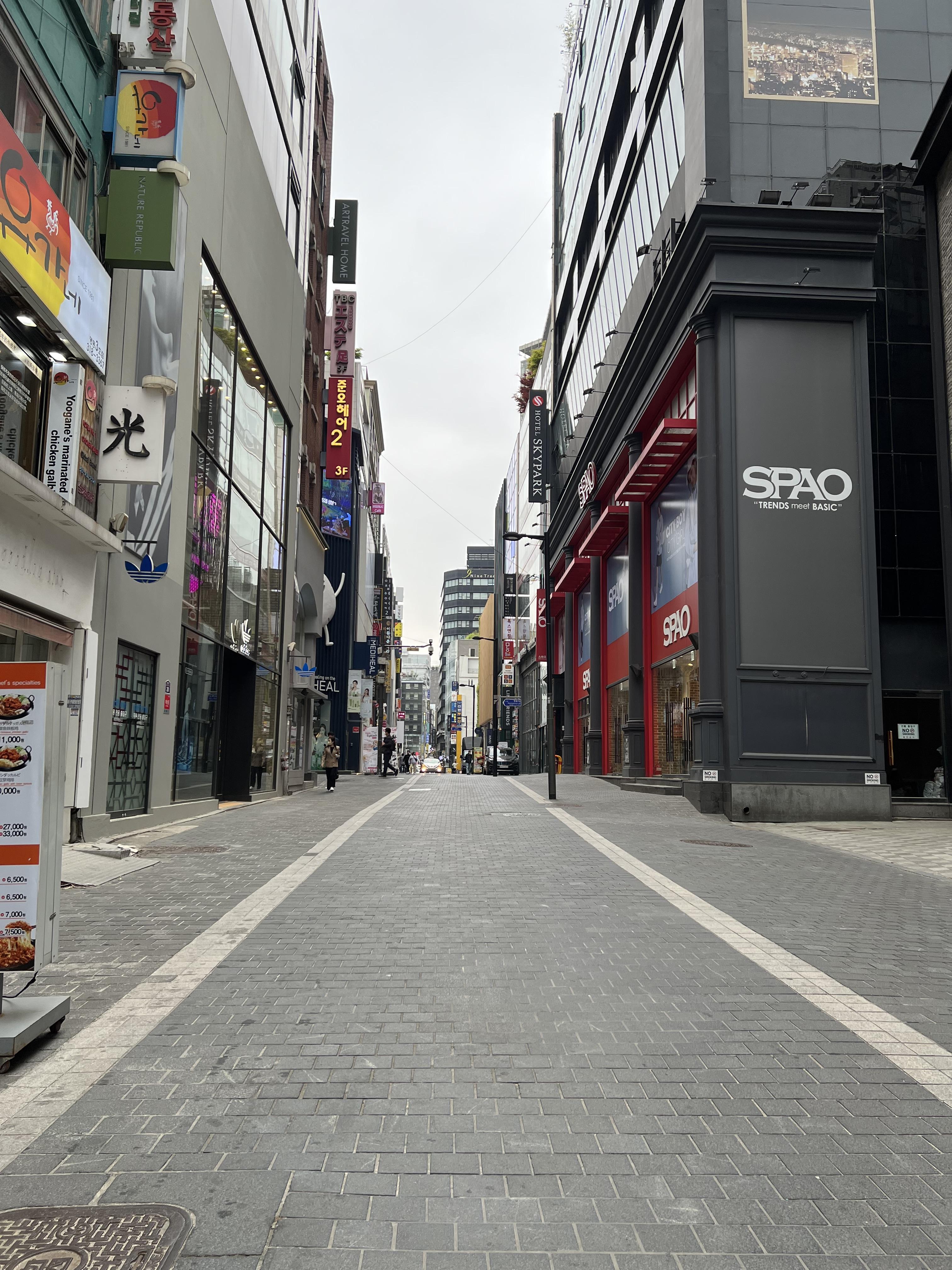 코로나19 펜데믹 상황 아니면 보기 힘든 한산한 명동거리.
